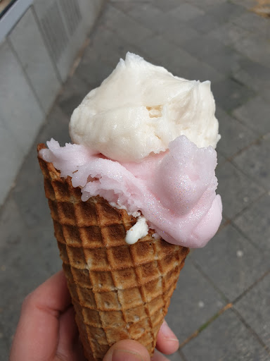 Read moreLeckeres Eis und tolle Kombinationen, da gibt es für mich keine zwei Meinungen. Auch die Auswahl an Veganen Varianten ist super. Was jedoch sehr schade ist: keine Klimaanlage in der Eisdiele. Im Sommer standen die Mitarbeiter schwitzend hinter der Theke und als Kunde ist man froh wieder draußen zu sein. es wäre schön, wenn die Mitarbeiter Handschuhe benutzen und nicht die essbare Waffel mit den selben nackten Fingern anfassen, mit denen sie auch das Geld kassieren und die Theke putzen. So leider beobachtet. im Sommer wäre eine Schale mit Wasser für Hunde eine angebrachte Aufmerksamkeit. Leider war sie nirgends zu finden, während man draußen in der Schlange steht.