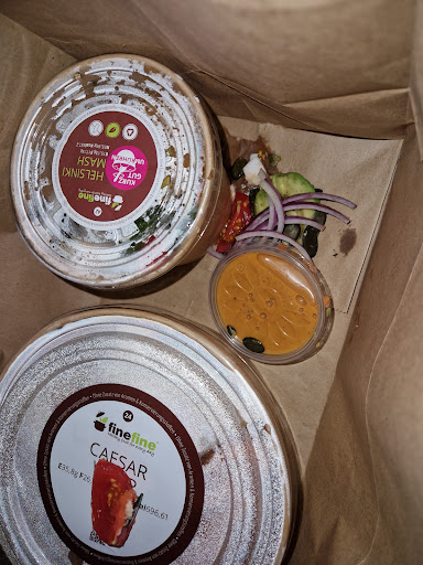 Read moreWir haben heute bei Fine Fine bestellt und befanden uns 5 Minuten von dem Laden entfernt. Die Lieferung hat insgesamt 50 Minuten gedauert. Nach 30 Minuten haben wir angerufen und gefragt, wo unsere Bestellung bleibt, da wir nur kalte Bowls bestellt haben die nicht viel Zeit in Anspruch nehmen sollten, woraufhin uns gesagt wurde in 5 Minuten würden sie da sein. Dann kam das Essen nach den vergangenen 50 Minuten an, ohne Gabeln, Löffel oder Servietten. Der Lachs war halb roh und sehr klein für den Preis, der Rest der Bowl bestand aus Salat und einer mini Portion Reis. Das Dressing war ungenießbar. Ich habe insgesamt 27€ für zwei Bowls ausgegeben, die viel zu lang auf sich haben warten lassen und dazu noch nicht genießbar waren! Ich habe zum ersten und letzten Mal in dem...
