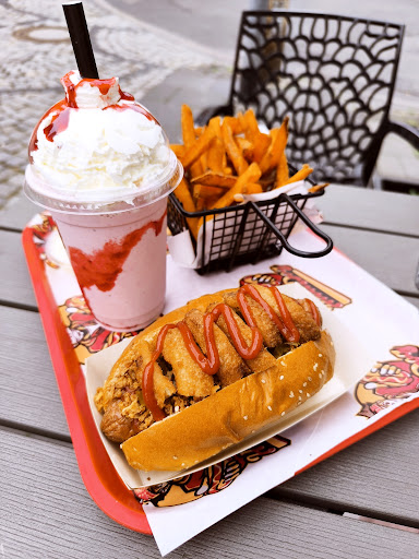 Read moreWir waren am ersten Tag dort und es war, wie zu erwarten, mega voll! Wir wussten das natürlich am ersten Tag alles etwas länger dauern wird, schließlich muss sich zu Anfang erst einmal alles einspielen. Nach etwa einer Stunde bekamen wir dann unser Essen und das war dann die Wartezeit wert! Das Essen war trotz des vollen Ladens und dem Stress an einem ersten Eröffnungstag super schön angerichtet, noch heiß und einfach lecker! Hervorzuheben sind selbstverständlich die Hotdogs aber zu unserer Überraschung auch die Milkshakes, die waren so satt im Geschmack und im Vgl. zu anderen Lokalen schmeckte man eindeutig heraus welche Sorte man sich ausgesucht hatte!! Alles in allem absolut empfehlenswert, würde jedem einfach empfehlen mal hinzugehen und sich selbst ein Bild davon zu machen, eine absolute Bereicherung für die Gastrolandschaft in MG 💯 Vielen Dank und ganz sicher bis zum nächsten Mal 😌🤝🏾