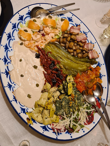 Der zugewiesene Tisch war direkt an der Türe, wobei alle anderen Gäste ( wohl allesamt Stammgäste) einen Tisch weiter im Lokal bekamen. Meine Frau bestellte, die auf der Karte ausgewiesene Lasagne, die jedoch nicht serviert werden konnte, sondern lediglich Cannelloni… ( Zitat Servicekraft: Ist ja das Gleiche!?) Des Weiteren entschieden wir uns für eine Vorspeisenplatte ( nur ab 2 Personen für 13,00€ p.P.) Als Platte konnte man dies jedoch nicht bezeichnen, mal ganz zu schweigen von den angebotenen Zutaten( 2x Tomate/ Mozzarella; 2x Vitello Tonato; 2x Grillpaprika; einen Klecks Lachs auf einem kleinen Berg Eisbergsalat; 2 Stückchen Artischocke) und dies für völlig übertriebene 26,-€ Ebenso auch die völlig übertriebenen Getränkepreise ( Chardonnay 0,2 für 7,-€ und ein Pils 0,2 für 3,-€)