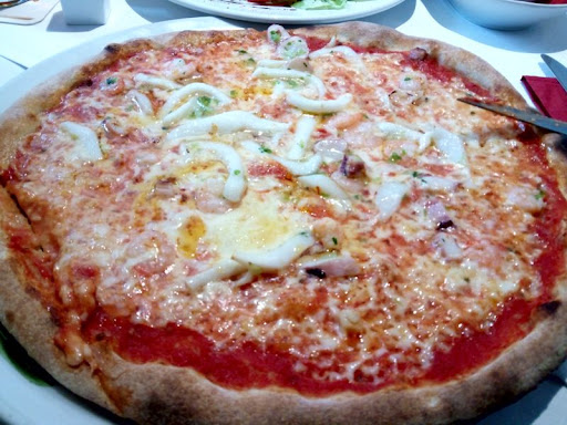 Wir hatten gemischten Salat, zwei mal Pizza (Frutti de Mare & Spinat mit Zwiebeln) und einmal Nudeln mit Meeresfrüchten (ich glaube es waren Garnelen).