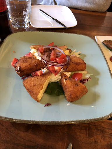 Das Essen: Leider nur sehr mittelmäßig bis wirklich schlecht. Nach dem Gruß aus der Küche mit knochentrockenem Brot und sehr mittelmäßigen Dips kam die kalte und warme Vorspeisenplatte für 2 Personen, welche, abgesehen von den immer noch mittelmäßigen Dips, fast komplett aus Covenience-Produkten bestand. Falls die Hackbällchen tatsächlich der Küche entsprangen, hat sich der Koch nicht mit Ruhm bekleckert.