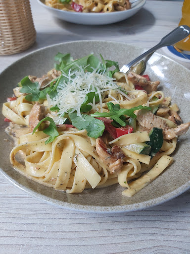 Das Essen im Rossini ist schlichtweg köstlich. Meine persönliche Empfehlung geht an die Tagliatelle mit Champignon Rahmsauce und Hähnchengeschnetzeltem, ein Gericht, das mich geschmacklich vollends überzeugt hat. Die Portionen sind großzügig bemessen, und die Qualität der Zutaten ist spürbar. Es ist offensichtlich, dass hier Wert auf Frische und Geschmack gelegt wird.
