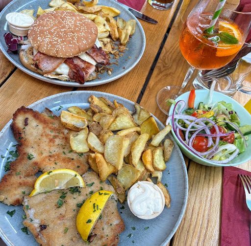 Insgesamt leider im Verhältnis zu den anderen Bewertungen sehr mittelmäßig. Wir hatten den Garnelenspieß als Vorspeise zum teilen, BBQ Burger + Wiener Schnitzel.