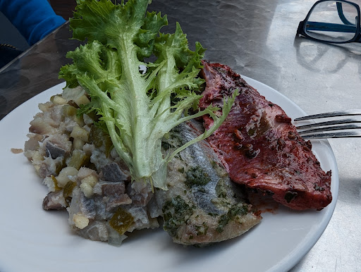 Naja, ... Wir hatten uns wirklich mehr erhofft. Positiv ist, dass die Fischbrötchen erst noch zubereitet werden und nicht stundenlang in der Auslage liegen. Qualität der Produkte war jedoch eher mittelmäßig. Gut zudem, dass auch eine angemessene Auswahl an räucherfisch angeboten wird. Hausgemachter Kartoffelsalat klingt erstmal gut, hat aber leider gar nicht geschmeckt. Remoulade wird vor unseren Augen vom Billig Discounter Produkt aufs Brötchen geschmiert. Backfisch leider auch TK Produkt. Und dann noch 3G Regel. Vielleicht kann sich das dieser laden leisten aufgrund seiner Lage auch noch einige Gäste zu vergraulen und nicht zum bleiben zu animieren...