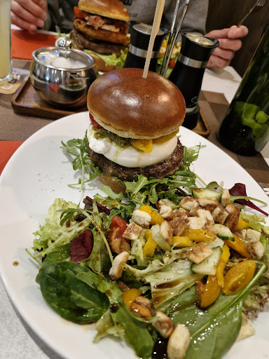 Read moreWir waren 2x zum Abendessen hier, und waren völlig begeistert. Das ehemalige Café hat durch die neuen Inhaber ein schönes, aufgeräumtes, modernes und gemütliches Ambiente bekommen. Das Personal war freundlich und professionell. Die Weinkarte sah sehr gut aus, wir haben uns als Nicht-Alkohol-Trinker über eine sehr leckere, nicht zu süße hausgemachte Limonade gefreut. Das Essen war fantastisch! Modern, lecker, frisch, köstlich. Auf Wunsch wurde uns eine Suppe zu 2 kleinen Vorsuppen aufgeteilt- sogar ohne Aufpreis. Die Burger waren sehr gut, alle Zutaten frisch. Beim zweiten Besuch haben wir Pinsa probiert und waren begeistert. Auch das kleine Feinkostgeschäft hat uns gefallen. Wir haben Gewürze, Öl und Pesto mitgenommen. 🙂Wir wünschen den Inhabern viel Erfolg und reichlich Personal- die Gäste kommen bei dieser Qualität ganz...