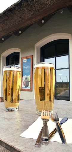 Die Preise sind heftig aber okay wenn man dafür auch was geboten bekommt, dachten wir, geht das in Ordnung. Es ist halt auch ein Feriendorf. Was halt irgendwie gar nicht geht sind fast 5 Euro für eine handvoll nicht garer Pommes zu berechnen. Die waren innen komplett roh bei uns allen und es war echt wenig. Das Schnitzel triefte sehr fettig und die Burger waren recht klein und spärlich belegt. Die Soßen erinnerten an die in unserem Kühlschrank. Irgendwie hingemacht und lieblos alles. Für Selbstbedienung und diese Qualität einfach zu teuer. (70 Euro drei Hauptgerichte und drei Getränke) Was auch sehr unappetitlich und unhygienisch ist, ist dass alle Gäste sich ihr Besteck aus grossen Behältern selbst heraus kramen. Wenn da nur einer Schnodder verteilt, na danke. Das müsste man anders lösen.