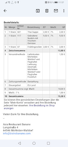 Read moreIch war heute nach langer Zeit mal wieder im Bistro Banane! Es ist wirklich sehr schade, wie dieses Restaurant runtergewirtschaftet wurde! Als Vorspeise hatte ich Frühlingsrollen die nach altem Fett geschmeckt haben! Danach das Thunfischsashimi, farblich ging der Fisch schon ins Grau über und geschmacklich eher wässrig-neutral, also definitiv kein kulinarisches Erlebnis für den stolzen Preis von 14,90€!!!! Die Pho Bo im Anschluss war lecker, aber es hätte mehr Fleisch drin sein können! Während ich aß, kam der Sohn der Besitzer aus der Schule! Er setzte sich in einen abgetrennten Bereich und fing an Filme auf dem Handy zu gucken! Und zwar so laut, dass es die Musik im Restaurant übertönte! Auf meinen Hinweis, dass das ziemlich nervig ist (ich wolte in Ruhe essen und in meinem Buch lesen) sagte seine Mutter nur, es tue ihr leid, und ließ ihn bei gleicher Lautstärke weiterglotzen! Meine Idee doch einfach Kopfhörer zu benutzen, verneinte sie, denn davon bekommt man Kopfschmerzen! Ach so, es ist also wichtiger, dass der Sohn in Ruhe glotzen kann, ohne Kopfschmerzen zu bekommen, während 4 Meter neben dran zahlende Gäste versuchen in Ruhe zu essen?! Muss man nicht verstehen, aber ich werde in Zukunft dort...