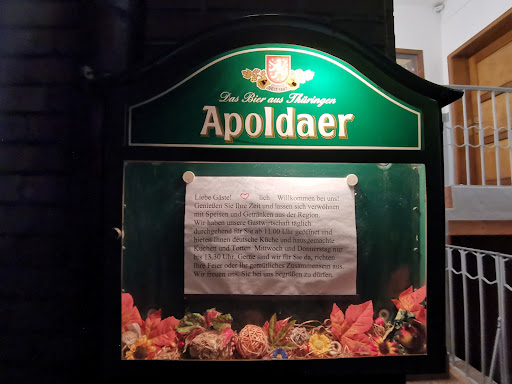 Read moreMitten im Ort liegt die kultige Gaststätte Goldener Anker. Wer mal gepflegtes DDR Ambiente erleben will, ist genau richtig. Hier ist ein wenig die Zeit stehen geblieben und das macht den besonderen Charme aus. Am Eingang wird am Wochenende und Abends Limo, die Bravo und das Bier für Papa verkauft, drinnen gibt's täglich deftige Hausmannskost. Sehr lecker und alles von Hand zubereitet. Kein Fastfood, sondern echte deutsche Küche wie bei Muttern. Sehr lecker und originell Thüringen, obwohl Mücheln in Sachsen-Anhalt liegt. Omas Rezepte kommen aber aus Thüringen und das schmeckt man. Ein echter Geheimtipp... Und das Klo ist...