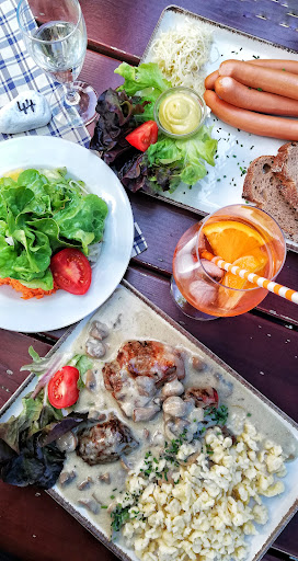 Es gibt aussen einen grossen Biergarten und innen verschieden grosse Räume. Der größte davon befindet sich in einem schönen Ziegelgewölbe.