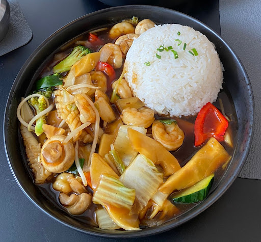 Das kulinarische Angebot ist vielfältig und reicht von klassischen chinesischen Gerichten bis hin zu innovativen Fusion-Kreationen. Besonders empfehlenswert ist der Wok, der mit frischen Zutaten und perfekt abgestimmten Aromen zubereitet wird. Hier merkt man die Leidenschaft und das handwerkliche Können der Köche. Die Gerichte sind nicht nur optisch ein Genuss, sondern auch geschmacklich ein echtes Highlight. Die Saucen sind perfekt gewürzt, die Fleisch- und Fischstücke zart und die Gemüsebeilagen knackig frisch.