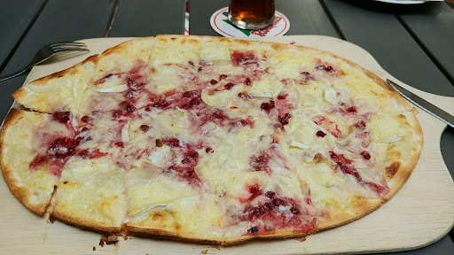 Read moreNettes, kleines Lokal mit freundlicher Bedienung. Es gibt zwar fast nur Flammkuchen, dafür schmeckt dieser aber wirklich gut. Wer jedoch Flammkuchen will, sollte dort unbedingt hingehen! Meine Wahl (siehe Bild) fiel auf Camembert/Preiselbeere. Lecker! Der "normale" Kuchen als Nachspeise ist auch nicht zu verachten. 😉 Sitzgelegenheiten befinden sich in der ruhigen Gasse davor, innen und in einem kleinen Hinterhof mit 2 Tischen. Aus letzterem hat man einen Blick auf die...