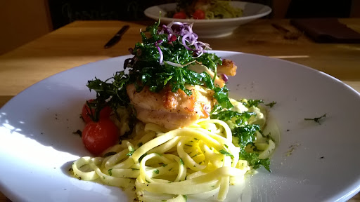 Waren anlässlich des Geburtstages meiner Frau hier essen. Hatte einen Tisch reserviert und wurde bereits bei der Reservierung am Telefon darauf hingewiesen, dass zeitgleich eine Veranstaltung im Hause ist und es daher zu Verzögerungen kommen kann in der Küche. Wir Erwachsenen konnten die 45 Minuten Wartezeit gut aushalten, hatten aber ein Kind dabei und die Wartezeit wäre etwas zu lang geworden und die Küche hat es trotz Veranstaltung einrichten können, dass das Kinderessen schnell am Tisch war. Der angrenzende Spielplatz ließ die Wartezeit dann komplett vergessen.