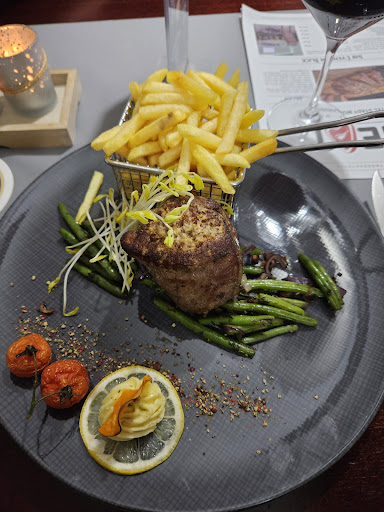 Read moreIch bin leider zum 2. Mal enttäuscht worden. Beim 1.Mal mussten von 10 Personen drei ihre Steaks zurückgeben, da sie wie eine Schuhsohle gebraten waren und nicht Medium wie bestellt. Das Fleisch ist wirklich gute Qualität, von einem Fleischer aus der Stadt , wo wir auch privat kaufen . Noch dazu ist es auch sehr Preisintensiv im Einkauf wie auch dann bei Ihnen. Dann muss mit den Produkten auch sorgsam umgegangen werden vorallem wenn man das Restaurant bewirbt als Steakhaus. Beim 2.Mal haben wir einen Wellnessabend mit anschließendem Essen gemacht. Wellness war alles sehr schön Aber dann ging es mit dreckigem Besteck ( noch dazu drei unterschiedliche Bestecksorten), dreckige Gläser, schmutziger Tischdecke und unfreundliche Bedienung weiter. Eine teure Flasche Wein wurde uns nicht geöffnet . Auf Nachfrage kam die Antwort, das sie schließlich nicht weiß wieviel Wein und Wasser jeder möchte. Die Kellnerinnen liefen schlecht gelaunt in Strickjacken und Blousons als wenn Ihnen kalt wäre. Für so einen Laden mit solchen Preisen geht das für uns gar nicht. Weiterempfehlen kann man das auf...