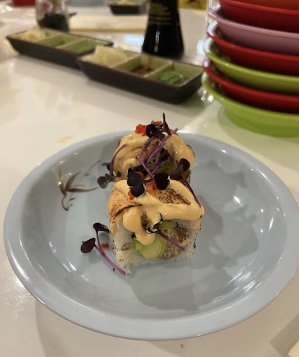 Read moreKontaktaufnahme problemlos Online, leicht zu finden, kostenfreie Parkplätze am Bahnhof in der nähe verfügbar. Option zwischen Karte und All you can eat an einem "Laufband". Gute Sushi Auswahl, keine Überraschungen, viel "Standard" - diese aber ohne große Mängel. Dinge aus der Friteuse wie Frühlingsrollen etc., Beilagen wie Salate oder Edamame und Süßes stehen zur verfügung. Leider drehten die Teller auf dem Band hier und da eine Runde zu viel, was dazu führte, das warme Speisen kalt waren, dazu denke ich das es dem Rohen Fisch nicht sonderlich gut tut, wenn er sich längere Zeit ungekühlt im Kreis dreht. Ebenfalls war es sehr schade, das das Band zeitlich leer lief und ich vergebens auf nachschub gewartet habe (15-20 min.). Die nette, sehr Aufmerksame Service Kraft hat nach wünschen gefragt, als sich das Band leerte. Leider musste ich vergebens auf die bestellungen warten und habe das Lokal gut gesättigt, aber etwas ernüchternd wegen besagtem unbestücktem Band verlassen.