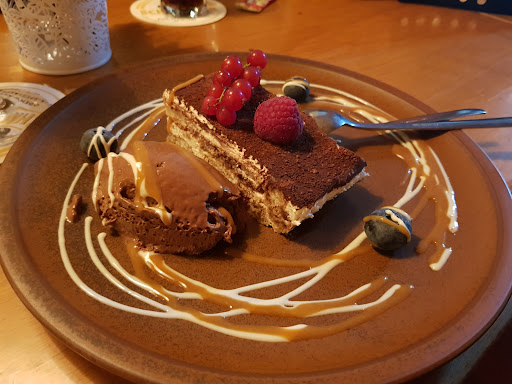 Für die Nachspeise haben wir uns eine extra Karte geben lassen. Auf der normalen Speisekarte gibt es zwar ebenfalls Nachspeisen, allerdings gibt es auf der extra Nachtischkarte (meiner Meinung nach) die besseren Sachen. Es gab ein Duett aus Schokoladenmouse und Tiramisu, auch dieses war wieder sehr köstlich und absolut zu empfehlen.