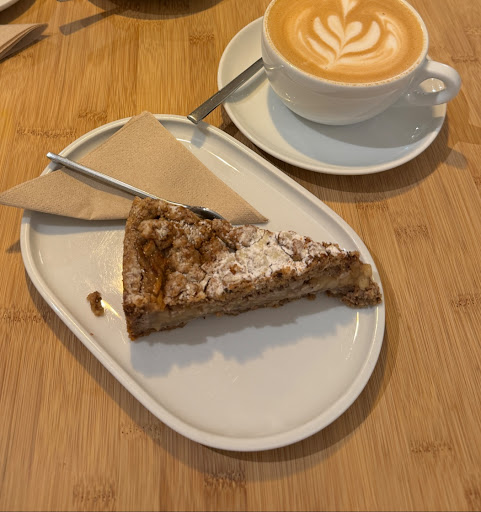 A very pleasant Vegan Cafe. The decor and atmosphere are very pleasant, clean & well maintained. They had some lovely little touches, like candles on the tables, plants & interesting art pieces. I wasn’t rushed & time seems to slow here in a peaceful way. The lady who served me was kind, patient & even spoke English. I attempted what German I could & was made comfortable with a smile & warm personality. I ordered a milk coffee with caramel, which was mild & made very well. Though I couldn’t taste much Caramel 😄 fortunately there was sugar on my table. The food was excellent, very well presented, clearly made with love & attention to flavours. I also had an espresso to try the coffee on its own and it was very good. Tables were cleared & cleaned quickly.