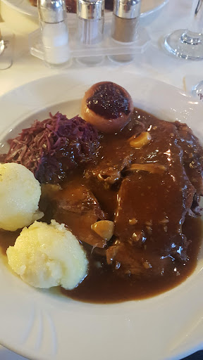 Das Haus an sich ist ganz nett und sehr gepflegt. Ein schönes altes traditionelles Gasthaus. Das Publikum eher 60+. Parkplätze vor der Tür und auf einem weiteren Parkplatz gegenüber vorhanden. Bei der Begrüßung wurden wir durch den Chef eher hektisch empfangen. Der von uns im Vorfeld reservierte & noch einmal durch uns bestätigte Tisch stand nicht zur Verfügung. Man wollte uns dann bei Regen nach draußen auf die Terrasse setzen. Man habe den Tisch nicht frei, da so viele für draußen reserviert hatten, die nun aber drinnen sitzen wollten und jetzt wäre halt unser Tisch nicht frei. Das war schon kein guter Einstieg. Wir haben darauf bestanden, dass wir ja im Vorfeld für drinnen reserviert hatten und auch nicht draußen sitzen wollten und wurden dann an einen großen Tisch mit dazu gesetzt, an dem schon andere Gäste saßen. Ich habe damit kein Problem, jedoch wurden die Gäste, die bereits dort saßen, nicht einmal gefragt, ob ihnen das recht wäre. Die Bedienung, die uns dann betreute war sehr nett und zuvorkommend. Vorab wurde eine Suppe vom Haus serviert, die wirklich gut geschmeckt hat. Der Salat war dann leider in sehr süßen Joghurtdressing ertränkt, man hatte jedoch die Möglichkeit mit Salz & Pfeffer selbst dagegen zu steuern. Die Hauptgänge waren ok, jedoch das Gemüse sehr verkocht. Bei einer Rückfrage zum Essen kam der Chef selbst an den Tisch, nahm dann das Messer des Gastes und stocherte damit wild im Essen herum und verließ den Tisch mit den Worten, dass das Essen so wäre wie es auf der Karte stünde. Mir fehlten ehrlich gesagt die Worte. Dem Gast, der nachgefragt hatte wohl auch. Zum Dessert gab es dann für jeden Gast eine Kugel Eis mit einer leckeren Beerengrütze. Abschließend lässt sich sagen ,dass das Personal, welches uns bedient hat wirklich sehr freundlich und aufmerksam war, wir jedoch aus oben genannten Gründen wohl nicht noch mal wieder...