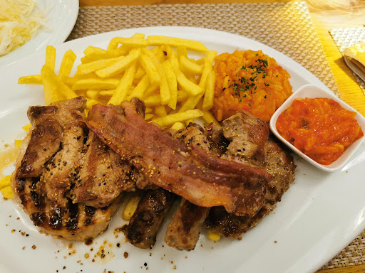 die Küche: unfassbar qualitativ hochwertige Gerichte, garzeiten der steaks absolut on point auch bei größeren gesellschaften (was ja wirklich sehr selten der fall ist das wirklich alle garstufen dann auch zeitlich funktionieren) die steaks (black angus) sind sehr geschmackvoll, saftig mit leichter smoke note und überdurchschnittlich. das essen ist zudem auch noch wunderschön angerichtet, selbst die kinderteller werden dekoriert. die portionen mehr als gut (aber auch nicht zu viel) frische knackige salate, lachs von hoher frischequalität auch mit perfekter garzeit.