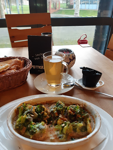 Very nice, cosy place. Probably in the warmer months even more pleasant due to nice surroundings ( park and castle). When u read the menu at first u think that it's nothing special, but there are few nice positions in the menu ( next to pizzas, falafels, hummus and burgers-basics in all modern restaurants ). I've ordered very good baked broccoli and mushrooms in great nut/chili sauce with a pint of cheese. For me perfect combination especially with heavenly crunchy garlic bread! I recomend it with my 2 hands!!! For sure I'll drop by the next time to try the celery schnitzel, sounds tempting;) probably during evenings and weekends it good to have a reservations there.