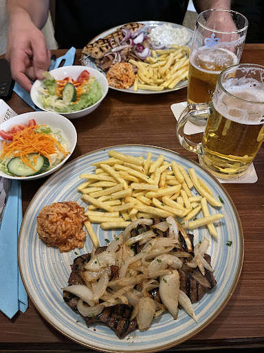 Read moreSpontan ohne konkreten Plan mit meiner Begleitung an einem Sonntagabend hier eingekehrt. Die Lage ist wunderschön und ruhig, alte Fachwerk-Häuser, ein schöner Blick auf das im Sonnenuntergang schillernde Krankenhaus und wenig bis gar kein Autoverkehr an der kleinen Seitenstraße nebenan. Die Bedienung war überaus freundlich und schnell und konnte sogar den ein oder anderen Sonderwunsch bzgl. unseres Essens erfolgreich mit der Küche abstimmen. Kurz nach unserer Bestellung (10-15 Minuten) kamen auch schon unsere Teller. Was von der Zubereitungszeit an Fastfood erinnert, könnte aber vom Geschmack nicht weiter von ebendiesem entfernt sein. Fleisch jeglicher Art (Gyros, Bifteki, Schnitzel) ist hier eine absolute Empfehlung und sogar der Beilagen-Salat hat geschmeckt. Die Pommes waren heiß und knusprig, was in der heutigen Gastro leider nicht selbstverständlich ist, hier aber einwandfrei erledigt wurde. Gastfreundschaft, Ambiente und Essen waren allesamt top! Dafür zahlt man gerne und dabei ist es hier auch noch vergleichsweise günstig.