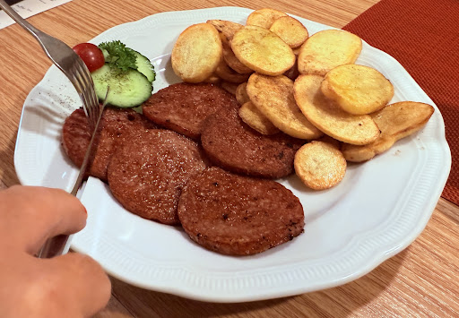 Wir waren am Samstag den 23.08.2025 abends gegen 19:00 Uhr zu viert dort essen. Es war die größte Enttäuschung der letzten Jahre. Wir hatten vier Essen bestellt, gebackene Göttinger, Schnitzel und Fleischkäse mit Ei, alle Gerichte wurden mit Bratkartoffeln serviert. Bratkartoffel sollte man dies allerdings nicht nennen. Farblose Bratkartoffeln aus der Tüte, mehr möchte ich dazu nicht sagen (siehe Foto). Die Göttinger, die am längsten auf sich warten ließ war sowas von ausgebraten, auch hierzu möchte ich mich nicht näher dazu äußern (siehe Foto). Die bestellten Essen wurden auf vier Etappen, nicht zeitgleich gebracht. Obwohl die Gaststätte an dem besagten Abend nicht ausgebucht war mussten wir lange auf‘s Essen warten. Da wir unsere Essen nicht zeitgleich serviert bekamen, war allein dies schon enttäuschend ☹️ Ich war mit dem Essen bereits fertig als das zweite Essen gebracht wurde. Ach das zweite Essen war verspeist bevor das dritte gebracht wurde. Die größte Frechheit war die Göttinger, die am längsten von allem dauerte und somit auch als letztes als wir alle längst gegessen hatten gebracht wurde. Diese besagte Göttinger (siehe Foto) war tot gebraten. Wir sahen uns gegenseitig an und fragten uns was das sein sollte. Eine absolute Frechheit was man uns hier servierte. Diese Gaststätte ist am Abend definitiv nicht zu empfehlen. Der Hammer war, das dann gegen 20:15 Uhr der Chef seine Schaschlik genussvoll verspeiste die es aber nicht für den Gast auf der Abend/Speisekarte gab. Wir jedenfalls sind bedient. Absolut nicht zu empfehlen somit gibt’s von uns dafür vier Daumen nach...