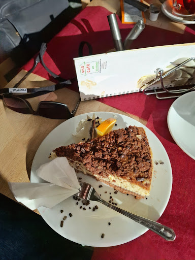 Read moreAuf der Durchreise dieses Café vorgeschlagen bekommen. Die Rezension waren überwiegend positiv, also nichts wie hin. Man kann draußen an mehreren Tischen sitzen. Diese befinden sich an einer Straße, die bei unseren Besuch mäßig befahren war. Wir entschieden uns für den Innenbereich. Nach einem netten Empfang durch die Servicekräfte folgte eine gute Erklärung der verschiedenen Kuchen Sorten. Wir entschieden uns für Eisbecher und einem Stück Russischen Zupfkuchen. Die Bedienung erfolgte schnell. Aber dann fiel der Blick auf das Kuchenstück, eine Größe die man nicht mehr so häufig erhält, lecker aus sieht und dann noch schmeckte. Die Eiskreationen waren auch lecker. Mehr kann man nicht...