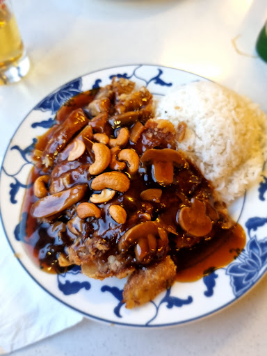 Bitte beachten: hier kann man nur mit Bargeld zahlen und man sollte direkt beim Reinkommen ins Restaurant am Tresen bestellen und sich dann erst hinsetzen. Die Tische sind bedingt sauber, die Speisekarten haben Flecke, Glas war schmutzig. Die Angestellte zeigte sich an diesem Abend etwas lustlos, nahm die Bestellung von Weitem auf (Wir hatten das Schild am Tresen beim Reinkommen übersehen). Jetzt zum Essen: Tom kha gai war gut und heiß. Die Krabbenchips ok. Wir hatten beide Ente mit unterschiedlichen Beilagen. Die Ente war eher fettig als knusprig. Alles war auf einem zu kleinen Teller angerichtet: grosse Portion Reis, Ente in Scheiben und die Sauce eher darüber und darunter....siehe Fotos. Wir haben schon besser chinesisch gegessen. Getränk wurde auch falsch gebracht. Ausserdem haben wir beobachtet, dass die anderen Gäste ihr Geschirr zum Tresen gebracht und gleich bezahlt haben. Wir machten das dann genauso, um schnell raus zu kommen. Das begründet sicher auch die massig sauberen Tische. Was man halt mit der benutzen Serviette eben so abwischen kann... Nicht zu empfehlen. Bei diesen Preisen hätten wir wenigstens ein Mindestmaß an Service und...