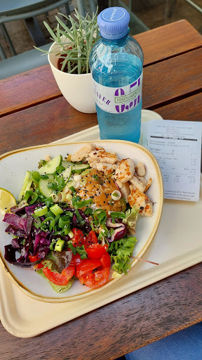 Read moreIch war heute in dieser Filiale essen, mit 3 Teenagern! Meine Tochter und ich kennen schon ein paar der Filialen, z.b. die in Dortmund, in der wir schon öfter waren. Wir haben also Vergleichsmöglichkeiten, leider sind wir auch durch die guten Erfahrungen darauf gekommen in Münster dort zu essen. Meine Tochter hat das Gericht genommen, dass sie auch sonst nimmt, nur war hier übermäßig Quinoa auf dem Teller und grob geschnittener Blattsalat! Es kam mir vor wie die Sparvariante, obwohl die Preise ja angehoben würden. Zu den anderen Gerichten kann ich keine Vergleiche ziehen, weil wir die das erste Mal bestellt haben und die waren auch nicht schlecht, aber halt auch nicht wow! Was aber schlicht gar nicht ging war die Bedienung! Die eine Dame war ganz neu dort und deshalb sei die Unsicherheit verziehen, aber die andere Dame war unfreundlich, frech, genervt... Das ging gar nicht! Unser "Alarmding" funktionierte anscheinend nicht und die Damen kam um die Ecke und pampte uns an, dass unser Essen fertig sei. Äh.. ja ok.. dann hatte ich bei der Bestellung gesagt, dass wir gerne Brot dazu hätten (in Dortmund, köln...kein Problem und wirklich lecker) , es war aber kein Brot dabei! Ich habe nachgefragt, da hat die Dame mir 2!!!! kleine völlig harte Minischeiben Brot gegeben, eins davon ein Kantenstück (wir haben für 70 Euro bestellt und waren zu viert) und als ich für meine Verhältnisse unfreundlich fragte, ob sie mich verarschen wolle, sagte sie "ich mache die Preise nicht" ! Das Brot war ungenießbar und die Bedienung auch! Schade, da die Erfahrungen mit diesem Kette eigentlich so toll waren, gerade auch durch die Freundlichkeit in den...