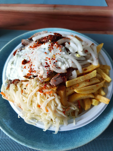 Ich hatte den Gyrosteller mit Pommes und Krautsalat – und der war wirklich hervorragend. Das Gyros war wunderbar saftig, hatte einen tollen Fleischgeschmack und richtig schöne Röstaromen. Besonders beeindruckt hat mich, dass die Gyrosspieße hier noch selbst gesteckt werden. Eine freundliche Mitarbeiterin hat uns den Spieß sogar gezeigt und mit den Händen die obersten Fleischscheiben angehoben. Da merkte man sofort: Sie ist richtig stolz auf die Qualität und das handwerkliche Können, das dahintersteckt – völlig zu Recht.