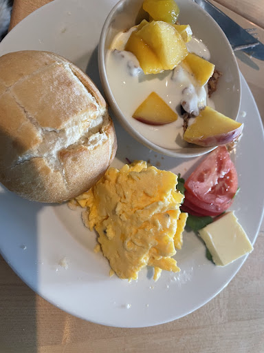 Read moreWir waren auf Empfehlung einer Freundin beim Sonntagsfrühstück, leider war die Erfahrung insgesamt eher ziemlich enttäuschend. Das Personal war sehr freundlich und bemüht aber heillos überfordert. Am Buffet musste man durchgehend darauf warten, dass etwas nachgefüllt wurde, das galt sowohl für Essen und Trinken als auch für Besteck und Geschirr. Die Trinkschokolade, auf die wir auch länger gewartet haben, stellte sich als heiße Milch mit dazu gereichten Schogetten heraus. Das ist keine Trinkschokolade. Es gibt Schokolade, die dazu gedacht ist, in Milch aufgelöst zu werden, aber mit Schogetten macht man einfach keinen zufriedenstellenden Kakao. Abschließend fand ich die Auswahl auch eher dürftig, vorallem für den erhöhten Preis von 17€. Es gab eine kleine Käseauswahl und die einzigen warmen Speisen neben einer Suppe waren Rührei und Speck (die natürlich fast immer vergriffen waren. Pfannkuchen oder Waffeln, wie man oft bei anderen Buffets bekommt, gab es nicht, dafür nur zwei Geräte, an denen man Poffertjes selber machen konnte. Da das aber sehr lange dauert und alle Gäste sich die Geräte teilen müssen, ist das aber meiner Meinung nach kein Ersatz. Darauf, dass der Teig nachgefüllt wurde mussten wir dann auch warten.