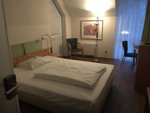 We've stayed in a few hotels in Munster over the last couple of years as our daughter studied at the UWW, but this is the best so far. We're surprised the hotel only has 3 stars, the standard seems much higher than this.|The hotel is located on the outskirts of the city, and this is reflected in the price and the peaceful environment. The area is well served by local buses. The number 11 opposite the hotel will take you into town for just 3 Euros.|Our room was small but well appointed. We particularly liked the bathroom, the shower was first rate. Breakfast was in a dedicated ground floor room and buffet style. There was a good selection of food and coffee was freshly made to order. The staff were really lovely, and between our poor German language skills and their smattering of English, we did very well. |We really recommend the linked Bakenhof restaurant. The standard of food was very good indeed. There is a set menu available which changes monthly. It is really good value, but you'll need a...