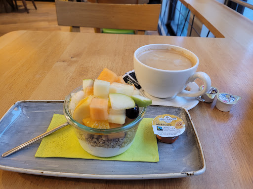 Read moreLocated in a quiet corner of a shopping mall in front of the Picasso Haus. Quick friendly service and reasonable prices. A good selection of breakfast dishes. The scrambled eggs with ham and cheese were very good. However, "Currywurst" is apparently a foreign word and is absolutely not to be recommended! It's a Bockwurst with tomato sauce and a dash of curry powder. Tasted O.K. but as not a real Currywurst. Thankfully, I'll be in Cologne next week where they have very good...