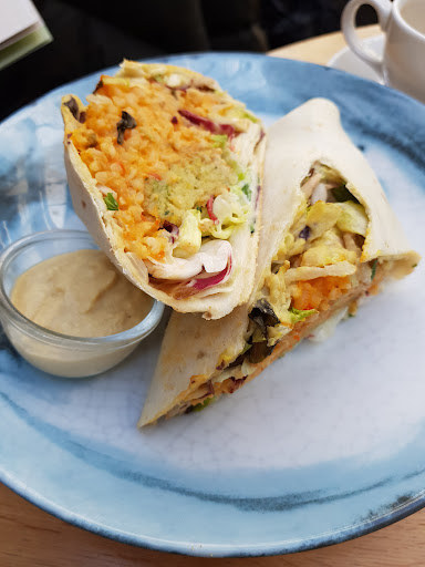 Read moreWir waren heute zu dritt dort und haben etwas getrunken und gegessen. Bei Getränken kann man nun recht wenig falsch machen. Daher kann man hierüber nichts negatives sagen. Bei dem Essen sah es jedoch anders aus. Wir hatten einmal einen Flammkuchen und einen Wrap. Der Flammkuchen mit Speck und Zwiebeln war zwar groß, jedoch leider nur Mittelmaß. Er war sehr trocken und nicht wirklich großzügig belegt. Da habe ich schon deutlich bessere gegessen. Der Wrap war o.k. jedoch auch nicht sehr mit Liebe gemacht....Alles in allem, muss ich leider sagen, dass wir schon deutlich besser gegessen haben. Die Lage ist TOP. In den MS Arkaden sitzt man trocken und mit dem Glasdach auch schön hell. Leider sind die Mitarbeiter auch nur Mittelmaß. Sie machen Ihren Job, jedoch Höflichkeit und schnelles reagieren, stelle ich mir anders vor. Kein nettes Wort oder mal ein flotter Spruch... Fehlanzeige! Konkretes Beispiel: Wir sind mit Sicherheit nicht die ersten, die einen Flammkuchen bestellt haben. Dieser wird auf einem Holzbrett geliefert (das wirkt rustikal und ist positiv). Das Esse gibt jedoch eine Art "Schwitzwasser" ab. Nach dem Essen musste ich dann dem Kellner das leere Brett in die Hand drücken. Da stellte ich fest, dass darunter der gesamte Tisch nass war. Somit musste ich selber mit der Serviette den Tisch trocknen. Dieses hätte auch der Kellner machen, können oder zumindest mich darauf aufmerksam machen müssen. Das wird ja vermutlich mehrere Male am Tag passieren.... Fazit: Wer gemütlich was trinken möchte in einer sehr gemütlich Location, ist hier sehr gut aufgehoben. Wer lecker essen möchte und einen gewissen Anspruch hat, sollte besser auf ein anders Lokal ausweichen. Ebenfalls sollte man nicht zu hohe Ansprüche an Freundlichkeit und...