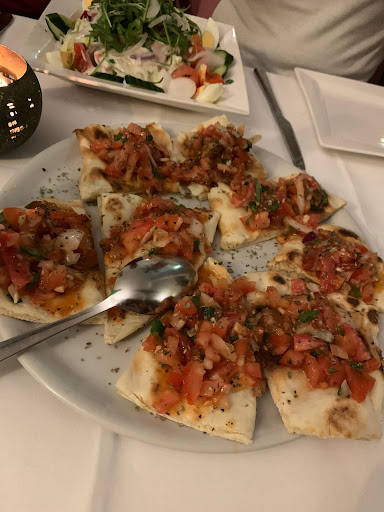 Read moreSehr leckere Tagliatelle mit Lachs, Scampi (etwas fest) und Salbei. Mit leckeren Zwiebelchen, einer Knoblauchzehe, Salz und grobem Pfeffer. Genau so wie ich es mir wünsche. Weder zu viel noch zu wenig gewürzt. Ein (weiterer) kleiner Schuss Weißwein hätte dem Essen noch gut gestanden. Dann wäre es wirklich komplett perfekt gewesen. Am Tellerrand mit geriebenem Parmesan garniert. Die kleinen Amuse-Gueule Brötchen aus Pizzateig waren knusprig, locker, nicht übersalzen. Und die Kräuterbutter hat auch dazu gepasst. Da das jedoch mit den Tagliatelle serviert wurde, hatten die keine wirkliche Chance. Und am Schluss braucht man auch nicht mehr wirklich Pizzabrötchen.