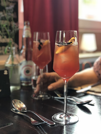 Read moreMit dem offenen Küchenkonzept und dem Barkeeper oder der Barchefin (mit Hut) hinter einer Mauer von Einmachgläsern werkelnd hat man das Gefühl, ein modern-familiäres Alchemie-Labor zu betreten, nur, dass in den Einmachgläsern keine Körperteile oder Kröten in Alkohol konservierend eingelegt wurden. Die Räumlichkeiten sind mit weiblichen Dekorgeschmack (Männer mögen Strandgutstaubfänger von Sylts Gestaden oder andernorts ja eher weniger) angefüllt und insgesamt zu hell und multipastellig geraten, aber einladend gestaltet. Im Sommer hat man dann das Glück (oder Pech, je nach Uhrzeit), draußen auf unbequemen Gartenstühlen im Busverkehr sitzen zu können, wenn man die Ausdünstungen der Küche nicht in seiner Kleidung mit nach Hause nehmen möchte.