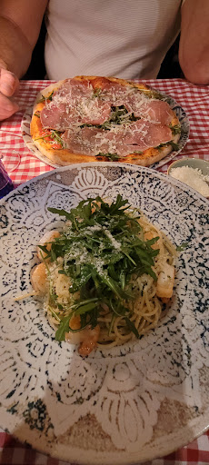 Read moreGestern Abend war ich mit meiner Mutter erstmals bei Trattoria. Wir hatten zu 19:30 Uhr einen Tisch bestellt und waren auch pünktlich vor Ort, vielleicht auch wenige Minuten zu früh. Wir sagten unseren Namen und erfuhren daraufhin, dass unser Tisch noch nicht frei sei, da den Gästen noch einen Augenblick eingeräumt wurde. Alles gut! :) Der Chef teilte dem Kellner mit, dass uns doch bitte je ein Glas Prossecco angeboten werden soll, um die Wartezeit zu überbrücken :) Sehr aufmerksam und dabei ging es wirklich fix. Als Vorspeise hatten wir einen gemischten Anti Pasti Teller, welchen wir uns geteilt haben. Sehr lecker! Nur leider mögen wir keine Garnelen, welche noch im Ganzen sind, also nicht geschält usw. Kann keiner wissen :) Alles andere war aber gut. Brot wurde auch dazu gereicht und auf den Tischen steht Öl, Balsamico, Salz und Pfeffer. Als Hauptspeise hatten wir beide Pasta, aber unterschiedliche Gerichte. Auch hier war alles super :) Guter Geschmack, gute Temperatur und sauberes Besteck. Begleitend dazu hatten wir jeder ein Glas vom Hauswein in Weiß. Zum Nachtisch hab es Panna Cotta. Diese hätte für mich mehr Zimmertemparatur haben können, aber geschmacklich top. Das Personal -und auch der Chef selbst- waren stets freundlich und aufmerksam. Die Geräuschkullisse ist leider etwas laut, aber nicht so schlimm wie bei Mocca d'or. Alles in allem hat es uns sehr gut gefallen und wir kommen gerne wieder :) Die Pizzen die um uns herum serviert wurden, sahen einfach nur genial aus! Die werden bei nächsten Mal getestet. Mit Trinkgeld haben wir insgesamt 60...