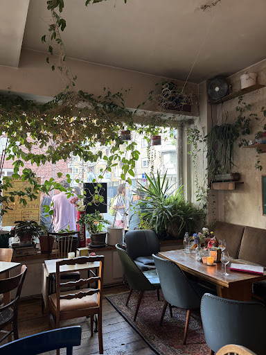 The pizzas here are really, really tasty. The quality of the ingredients is really good and everyone will find something to their taste here. There are just as many vegan pizza flavours as others. The furnishings are a bit flat-sharing community style with things thrown together. When the music from the eighties comes on, the older guests feel like they've travelled back in time. You absolutely have to book a seat. It's extremely busy, especially in the evening. My favourite pizza after three visits is the vegan courgette date chilli threads version, which is really delicious. I wouldn't try the crème brûlée. It was far too runny for us, but the chocolate mousse is very tasty. I will...