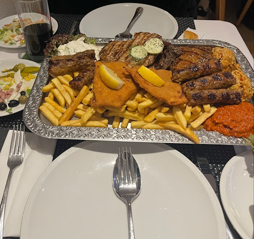 Zum falschen Zeitpunkt am falschen Ort so muss ich es bezeichnen wenn ich die Bewertung andere Gäste lese. Wir waren vor 2 Tagen um kurz nach 18.00 Uhr dort. Es war eine Empfehlung einer Freundin meiner Frau. Info war das ist so ähnlich wie bei M.. aus R... Jugoslawisches Essen in unsere Nähe. Aber ich hatte da meine Bedenken M... In R... war in den 90ziger eine Legende. Mit Herz und Leib Wirt, hervorragendes Bier, wo Du schon nach dem ersten Schluck sagst das ist das letzte. Aber der eigentliche Engel war die Liebe Frau von M... aus R... oft ganz allein in der Küche, aber was da raus kam war aller 1 Klasse und legendär. Eigentlich waren beide im Team legendär und bis heute nicht erreicht. Aber kommen wir zurück zu dem Abend. Ich hatte Gambach Teller, meine Frau Pola Pola, weitere Personen das gefüllte Hacksteak und die Hackfleischröllchen. Bei mir war das Schnitzel und Raznitchi Ok. Die Pommes waren aufgewärmt und geschmacklich nachteilig. Die Hackfleischröllchen waren schon zum 2ten mal in der Friseuse und nicht genießbar. Bei meiner Frau war das Raznitchi nicht essbar. Allein die Farbe tief Braun bis dunkel grau ließ sah so ganz anders aus, als dass ich auf dem Teller hatte. Der Spieß war überladen mit nicht essbaren Fleisch. Viel Speck, oder alt und wieder aufgewärmt einfach nicht essbar. Die Hackfleischröllchen waren wie bei mir schon zum 2ten mal in der Friseuse und nicht essbar. Das gefüllte Hacksteak war Ok und groß, aber nicht gewürzt. Die weitere Person hatte auch die Hackfleischröllchen, ich glaube ich muss mich nicht wiederholen, ihr wisst schon wass da steht. 16 Stunden später hat unser Magen mit uns gesprochen. Mein Gedanken ist, das Restaurant bietet ja auch Mittagessen an. Vielleicht wurde da einiges nicht verzerrt und am Abend dem ersten Gast wieder aufgewärmt und vorgesetzt. Bei unserer Einstellung, möglichst früh im Restaurant zu sein hat sich immer bewährt, weil der Koch noch kein Stress hat, alles frisch ist hatten wir immer super Qualität. Oft hat man noch Zeit für einpaar guten Worte. Hier war es umgedreht. Schade, uns wird man dort nie wieder sehen. Leider kann ich das Restaurant nicht empfehlen. Eigentlich hatte das Restaurant optisch ein guten Eindruck, weisse Hussen über den Stühlen, sehr sauber und freundliches Personal inklusiv...
