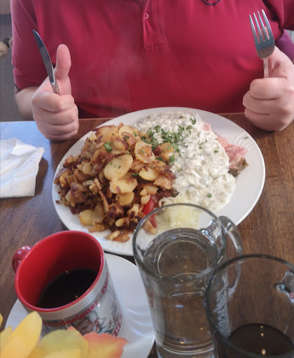 Trotz Gulaschsuppe vorweg, einer großen Cola, die wirklich groß war, dafür aber schal und abgestanden. Der Kaffee war 'nen Kaffee, so lala und gerade noch okay. Das erste und letzte Mal dort gegessen und ich denke am Montag, informiere ich die Behörden, wegen der "Verwechslungsgefahr" und der bewusst falschen Deklarierung! Gerne zahle ich 10 Euro oder auch 12 Euro für 'ne ordentliche Rinderroulade aus Rind (nichts aus Schwein, obschon Rind auf der Karte steht) und einer angemessenen Größe und Portion als die 7 Euro und werde an der Nase herumgeführt, weil das Rind ein Schwein ist!