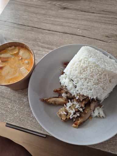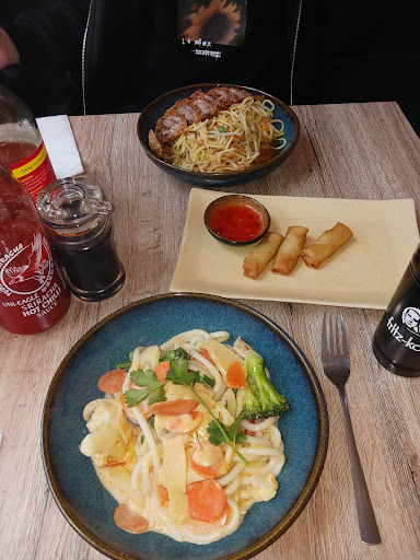 Read moreDei Kokossuppe mit Huhn war gut. Die gebratenen Nudeln mit Erdnusssouße waren sehr geschmacklos. Die auf dem Tich stehenden Chillisoußen waren nur süß und scharf und haben den Geschmack nicht wirklich verbessert. Zu den Nudel habe ich noch knusprige Ente bestellt die genauso geschmacklos war. Knusprig war an der Ente auch nichts. Die Ente war nur zäh und hatte eine undefinierbare weisse schleimige Kruste. Eine Ente die keine Haut hat habe ich noch nirgends bekommen. Das war das erste mal. Dazu habe ich noch ein 0,33 ml Wasser getrunken. Das Ganze für 17,00 € . Wenn es geschmeck hätte, hätte ich auch gern 30,00 € bezahlt, aber dieses Essen war seine 17,00 € bei weitem nicht wert. Schade, denn das Ambiente fand ich für ein Asia Street Food Imbiss ganr nicht schlecht. Schöne Lampiongs und ein tolles Bild von Vietnam. Schade aber das Essen ist nun mal beim essen...