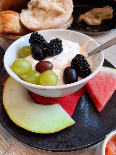 Read moreWir waren heute (27.12.2023) zum frühstücken. Wir wurden freundlich empfangen und zum Tisch gebracht. Es dauerte gute 50 Minuten, bis das Frühstück kam. Anderen Gästen ging es auch so. Es war nicht voll im Cafe. Ich weiß auch nicht, was an diesem Frühstücksteller so lange dauert (siehe Foto). Alles auf einen kleinen Teller geschmissen. Die Orange wurde mit dem Käsemesser geschnitten...hing noch an der Schale. Obst war auch nicht mehr ganz frisch. Die Brötchen waren pappig und mehr als kalt 🥶. Man hatte das Gefühl, es liegen einige Sachen auf dem Teller die schon vorher bei einem anderen Gast auf dem Teller gelegen haben. Z.B. war unter der Boulette (nicht genießbar) ein kleines Stück matschiger Salat....war nicht von unserem Teller. Auch am Käse war was, was da nicht hingehört. Wie gesagt, anderen ging es auch so. Wir saßen in der Mitte und die beiden Tische neben uns kommen auch nicht wieder.