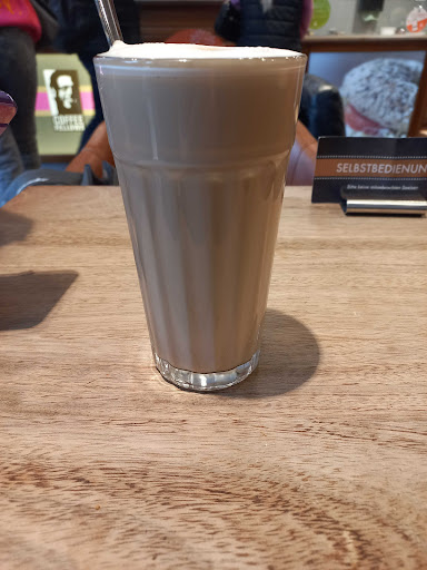 Read moreCoffee Fellows kennt man, wir waren öfter in anderen Städten dort. Leider waren hier im Schaufenster die Schilder vertauscht, was zwar nicht schlimm war, aber die Dame an der Kasse meinte dann, dass es die Hazelnut Brownies doch gibt und hat diese in einer Tüte aus der Schublade geholt und präsentiert. Sah dann halt super unappetitlich aus. Habe dann den Caramel Brownie genommen. War steinhart, ungenießbar. Hätte man leicht anwärmen können damit man nicht das Gefühl hat auf Stein zu beißen. Der Espresso Macchiato war einfach ein Espresso mit minimal Milchschaum. Was soll das? Hab mich etwas verarscht gefühlt, denn die Tasse war auch viel zu groß für das Getränk. Karottenkuchen war nicht herausragend, schmeckt bei Starbucks besser. Iced Frappe war in Ordnung. Immerhin keine abgelaufene Milch im Getränk! Insgesamt keinen erneuten Besuch wert...