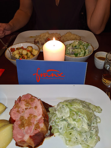 Im Rahmen einer Geburtstagsfeier wollten man in diesem Restaurant essen. Das Franx hat ein schönes Ambiente und besitzt eine große Fläche für mehrere Gäste. An diesem Abend war das Restaurant mit zahlreichen Gästen gut besucht. Wir nahmen an unseren reservierten Tischen Platz und bekamen nach wenigen Minuten die Getränkekarte. Zudem haben wir beim Personal nach einem weiteren Stuhl gefragt, was gleich verneint wurde. Wir bekamen die Antwort, dass man "einen Gast weg schicken müsste, um ein Stuhl zu bekommen". Ungefähr zehn Minuten später hat eine andere Servicekraft unsere Bestellung für die Getränke entgegen genommen. Danach sah man das Personal hin und her laufen und bedienten die anderen Gäste. Bereits beim Eintreten des Restaurants hatten wir den Eindruck, dass das Servicepersonal überfordert war, was sich danach auch nicht geändert hat. Die Mitarbeiter überschlugen sich fast beim gehen und rempelten sich beinahe an. Wir bemerkten nach einer viertel Stunde, dass wir noch immer keine Getränke bekommen haben. Wir waren geduldig und warteten in der Hoffnung, dass die Getränke zeitnah serviert werden. Als aber nach über 45 Minuten immer noch keine Getränke auf den Tischen standen, haben wir nachgefragt, wo die bestellten Getränke blieben und wann wir das Essen bestellen dürften. Der Servicemitarbeiter hat bei den Kollegen nachgefragt, was mit den Getränken ist. Einige Minuten später kamen die Getränke - anscheinend hatte man uns vergessen! Beim Servieren haben wir eine Mitarbeiterin nachgefragt, ob die Bestellung und das Servieren der Speisen auch solange dauern würde - keine Antwort, lediglich ein überfragtes Gesicht was zu erkennen. Eine Wartezeit von über 45 Minuten ist nicht akzeptabel! Wir hatten uns entschieden unsere Getränke zu nehmen, zu bezahlen und das Restaurant zu verlassen. Wir haben der Mitarbeiterin erklärt, dass wir nach den Getränken gehen. Nach kurzer Zeit kam ein weiterer Mitarbeiter an den Tisch und hat sich für den Ablauf des Abends entschuldigt. Er bot uns zwei Flaschen Rotwein an und wollte einen Neustart des Abends. Wir haben dankend abgelehnt und sind nach der Bezahlung gegangen. An diesem Abend wirkte das Personal gestresst und unorganisiert. Die Gäste solange warten zu lassen ist nicht in Ordnung. Auch wenn zu dieser Zeit, wie Mitarbeiterweihnachtsfeier oder ähnliches stattfinden, dann muss das Personal entsprechend vorbereitet sein!