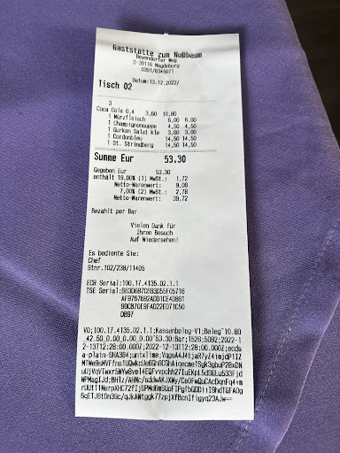Wie es der Zufall immer so will, hatten wir an der neuen Schatzhöhle in Magdeburg Ottersleben etwas zu erledigen. Und im Augenwinkel fällt mir ein altbekannter Name eines Lokales auf: „Zum Nußbaum“! Ich kannte es noch aus früherer Zeit, als hier ringsum nur Acker war. Es war damals ein gemütliches, kleines Lokal (Gartenkneipe). Spontan entschlossen wir uns mal reinzuschauen und Mittag zu essen. Zum Glück!!! Nach ganz kurzer Wartezeit kam der wirklich nette und freundliche Wirt an unseren Tisch. Es ist Spargelzeit! Was soll ich sagen? Natürlich gab es Schnitzel mit Spargel! Das Essen kam sehr schnell und ich muss sagen, ich war begeistert! Auf den Punkt! Kartoffeln waren noch handgeschält, Schnitzel war zart und sehr lecker! Der Spargel war... naja, er hätte besser nicht sein können!!! Das kleine Lokal ist absolut empfehlenswert! Wir werden auf alle Fälle...