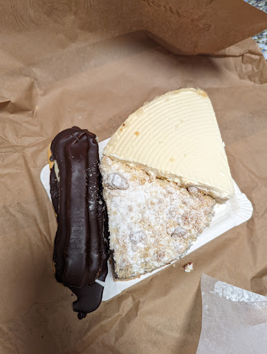 Read moreWaren auf der Durchreise und hatten ein Stopp in Magdeburg eingelegt und im Parkhaus bei Kaufland geparkt. Im Erdgeschoss fanden Wir dieses Bäckerei und entschieden Uns hier eine,, Verschnaufpause"einzulegen. Die Verkäuferin war freundlich und erklärte uns auf Anfrage fachlich den Kuchen /die Torten. Mein Mann hatte die Rum - Schnitte,sehr lecker im Geschmack und eine Heisse Schokolade (Kakao pulver ins Glas vom Automaten Heisse Milch drauf umrühren fertig). Ich hatte ein Cappuccino, der gut war und ein,, Mohrenkopf"mit Pudding gefüllt. Von mein Gebäck war ich enttäuscht, der Aufbau vom Gebäck vermute ich Biscuit oder Wienerboden Schalen die obere Hälfte mit Schokoladen Überzug in der Mitte ein Klecks Vanillepudding. Da hätte ich mehr von Erwartet. Das ironische ist der,, Mohrenkopf " ist teurer als die Rum - Schnitte. Zusammen haben wir 10,25 €bezahlt. Positiv muss ich erwähnen das wir,, Im Haus" verzeiht haben ohne Aufpreis.