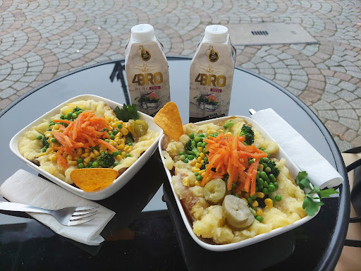 Read moreIch kann hier nur Unverständnis über die Rezensionen äußern. Das Essen besteht tatsächlich aus einer einzigen (!) faden aufgeschnittenen Ofenkartoffel, welche dann lieblos mit Tiefkühlzeugs gefüllt ist. Und das ist dann auch noch kalt. Für den Preis für knapp 9 Euro einfach frech, Materialwert liegt bei wenigen Cent und geschmacklich fad, so wie eben die billigen Tiefkühlerbsen ungeröstet und unüberbacken schmecken. Für mich schockierend, dass hier 5 Sterne vergeben werden.