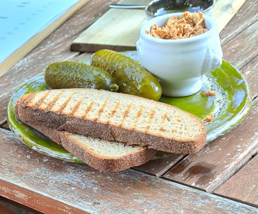 Sehr freundliches Team, das einen gleich willkommen heißt, als würde man schon seit Jahren dazugehören. Es gibt kleine Snacks (unter anderem eine vegane Schmalzstulle mit Zwiebeln und Gurke – klingt wild, schmeckt gut).