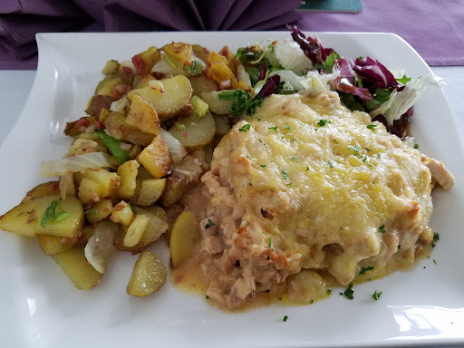Eigentlich hätte ich eher einen Stern abgezogen, als diesen zu erteilen. Aber ohne Stern keine Bewertung. Denken wir uns diesen Einen für die Location (Blick auf den See) und einem einzigen Kellner, der sich tatsächlich Mühe gab und freundlich war. Die übrige Besetzung entbehrte jedlicher aufrichtigen Mimik und quälte sich eher ein lächeln ab. Anlass unseres Besuches war eine Geburtstagsfeier. Es solle ein Buffet mit wahren Speisen geben. Anfänglich empfing uns eine sogenannte Hochzeitssuppe, die unter normalen Umständen eine Ehekriese ausgelöst und zu einer Scheidung geführt hätte. Wässrig mit dezentem Brühwürfelaroma, holzigen Spargelästen und undefinierbare Grünzeug (vermutlich Petersilie), etwas Eierstich und Mimiklösse aus der Dose und irgendetwas, das mein Kind als faserig Fleisch eines Tieres undefinierbare Gattung identifizierte. O-Ton meiner Tochter "die hätten lieber die Suppe von Aldi nehmen sollen. Die ist qualitativ hochwertiger." Autsch. Sollte die Suppe wider Erwartung selbst gemacht sein ... feuern Sie umgehend den Koch falls vorhanden! Aber das war noch zu toppen. Das anschließende warme Buffet bestand aus drei Menüs. Fisch, Geflügel auf mediterranem Gemüse, wobei das Gemüse an aufgewärmte Tiefkühlkost erinnerte, und Rinderbraten in Merettichsauce (diese Kombi war tatsächlich lecker, aber zu wenig für die angegebene Menge an Gästen). Typische Beilagen waren vorhanden. Das Wiederauffüllen der Schalen war katastrophal und dauerte ungebührlich lange. Mit einem leeren Teller in der Hand in einer wartenden Schlange zu stehen und auf Nachschub zu warten, spricht nicht gerade für eine gute Organisation. Die Küche nebst Küchenpersonal benötigt offensichtlich eine Generalüberholung nebst Schulung. Und ein gut ausgebildeter Koch wäre ebenfalls vorteilhaft. Convenienceprodukte (aufgetaute Lebensmittel) gehören in eine Küche mit dieser Preisklasse nicht rein! Womit ich zu Punkt drei komme. Aufgetaute Torten von KuW mit Eiskristallen im Innern, vom Puderzucker erschlagene Miniküchenstückchen und einer tatsächlich geniessbaren Donauwelle ließen den Wunsch vieler nach Eiscreme wachsen. Mit Bauchweh erwartete ich die Rechnung und wurde nicht enttäuscht. Sie enthielt das, was ich beim Buffet lieber gesehen hätte. Sie war gepfeffert. Ein Restaurant, das für eine gelinde gesagt mäßige kulinarische Leistung eine dermassen unanständig hohe Summe verlangt, darf sich über eine solch miese Bewertung nicht beschweren. Fazit. Horrende Preise für miese Leistung. Die schöne Aussicht auf den See und ein einziger, aufmerksamer und freundlicher Kellner kann das nicht aufwiegen. Wir waren das erste und gleichzeitig das...