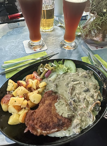 Read moreWir waren im Rahmen einer Geburtstagsrunde dorthin eingeladen. Zu erst muss man sagen das Essen ist, wie viele geschrieben haben, wirklich sehr gut. Der ältere Mann (Chef?) welcher für Getränke zuständig war ging gar nicht. Grimmig und unfreundlich. Wenn man tlws. beim Getränke bringen den Finger im Bier hat, ist das nicht mein Verständnis von Service. Dann mussten wir fast 11/2 Stunden aufs Essen warten um uns dann sagen zu lassen, Änderungen beim Essen sollen vorher angemeldet werden. Aber wenn man nur Brokkoli gegen Blumenkohl tauscht und statt Kroketten Bratkartoffeln möchte weiß ich nicht warum das anmelden müsste. Als man dann noch eine Nachspeise bestellen wollte wurde man drauf hingewiesen man ist kurz vor Feierabend. Wenn man sein Essen aber grad mal 15 Minuten vor Schluss erhält. Die letzte Dreistigkeit dann beim bezahlen wo noch gefragt wird wo denn das Trinkgeld ist. Aber Trinkgeld gibt’s für guten Service und nicht für schlecht gelaunte und überforderte...